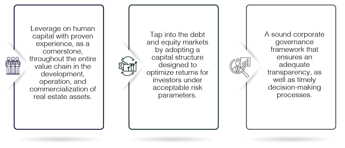 Our strategy will not be focused on any particular real estate segment, rather we will pursue opportunities primarily in large-scale real estate projects where our experience, strategy, and management capabilities are not easily replicable and constitute a unique competitive edge. Our business strategy consists primarily in the following components: